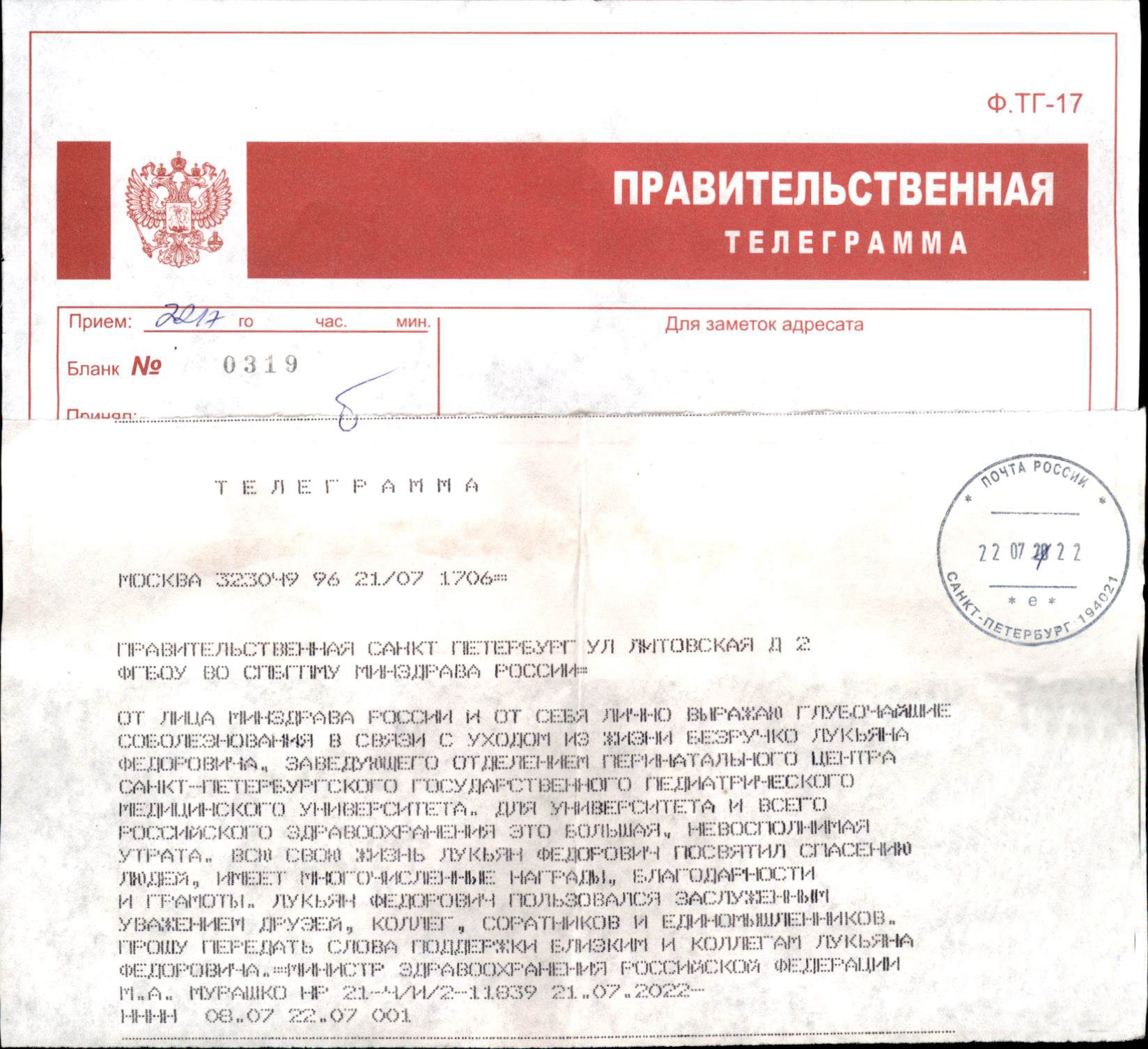 Министр здравоохранения Российской Федерации Михаил Мурашко выразил глубокие соболезнования в связи со случившимся. Глава министерства подчеркнул, что Лукьян Федорович был «блестящим, уникальным врачом». Вместе с Михаилом Мурашко доктор с 1997 по 2011 год работал в Республике Коми, очень много сделав для того, чтобы в регионе рождались сильные и здоровые дети.