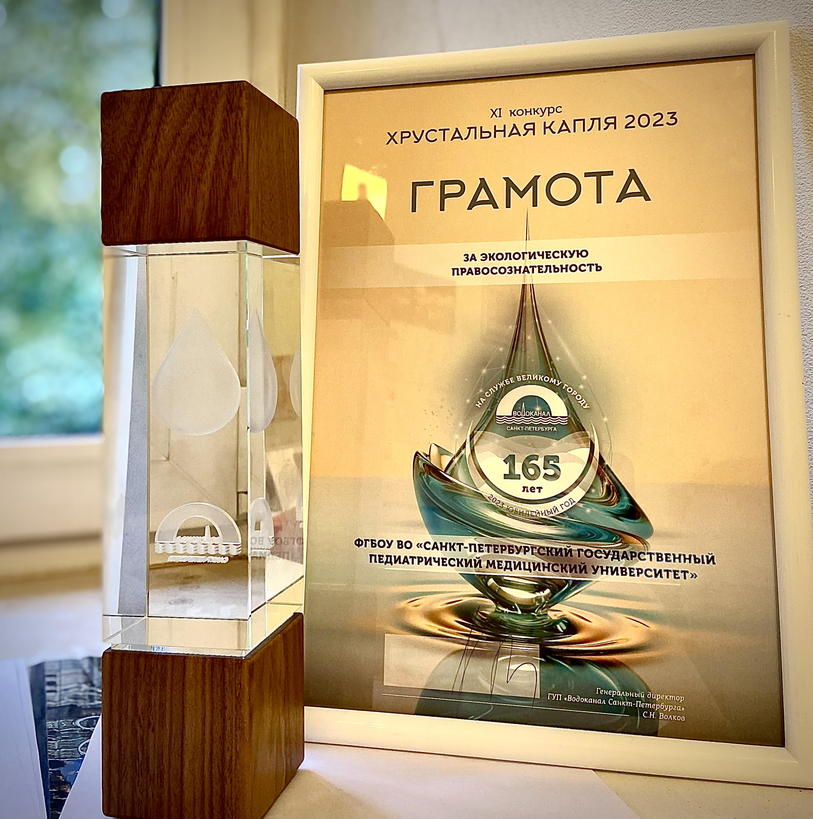 Усилиями администрации Педиатрического университета по сокращению расхода воды, сбережения ресурсов, качественную очистку сбросов организаторы конкурса отметили в номинации «За экологическую правосознательность».