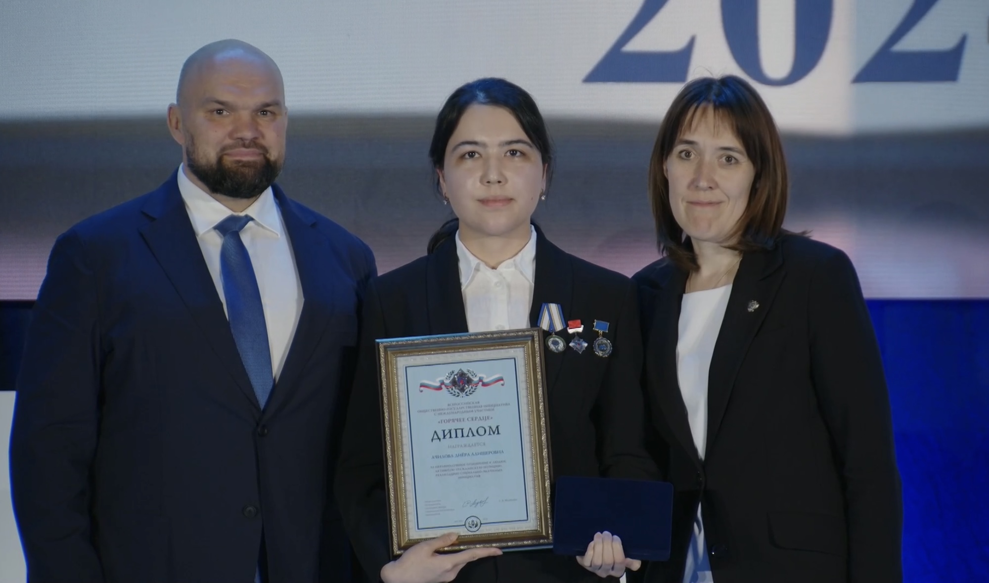 Среди удостоившихся нагрудного знака студентка 5-го курса Санкт-Петербургского государственного педиатрического университета Диёра Ачилова. Девушка обучается по программе двойного диплома СПбГПМУ и Ташкентского педиатрического медицинского университета. Диёра Ачилова получила награду из рук заместителя Министра науки и высшего образования России Ольги Петровой.