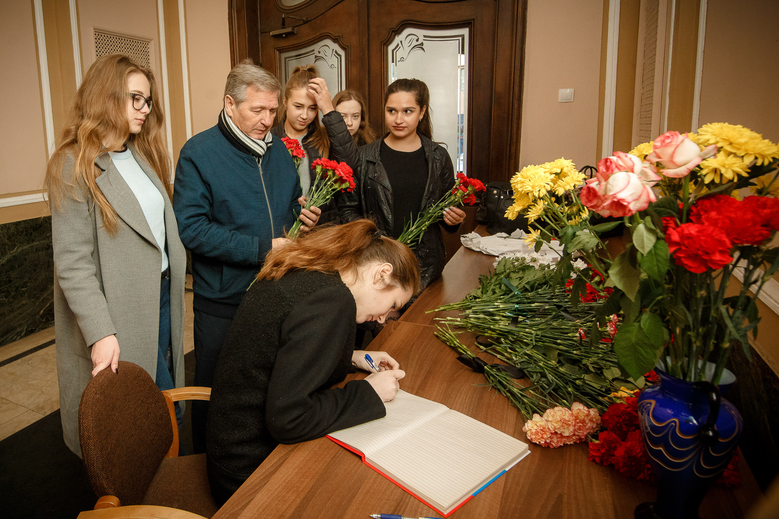 Стихийные мемориалы в память погибших в Политехническом колледже Керчи появились по всей стране уже вечером в среду. Для петербуржцев и гостей Северной столицы таким местом стал Дом национальностей на Моховой улице. Будущие педиатры присоединились к жителям Петербурга и возложили цветы, а также оставили слова сочувствия родственникам погибших и пострадавших в специальной Книге памяти, которая затем будет отправлена в Крым.