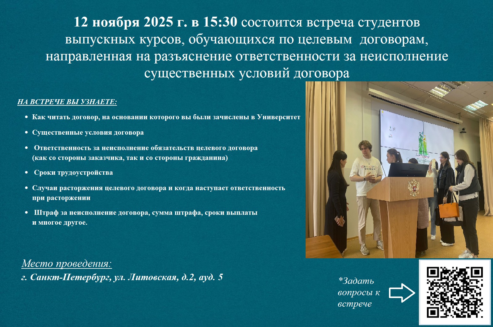 Приглашаем студентов «целевиков» узнать свои права и обязанности на встрече с администрацией вуза
