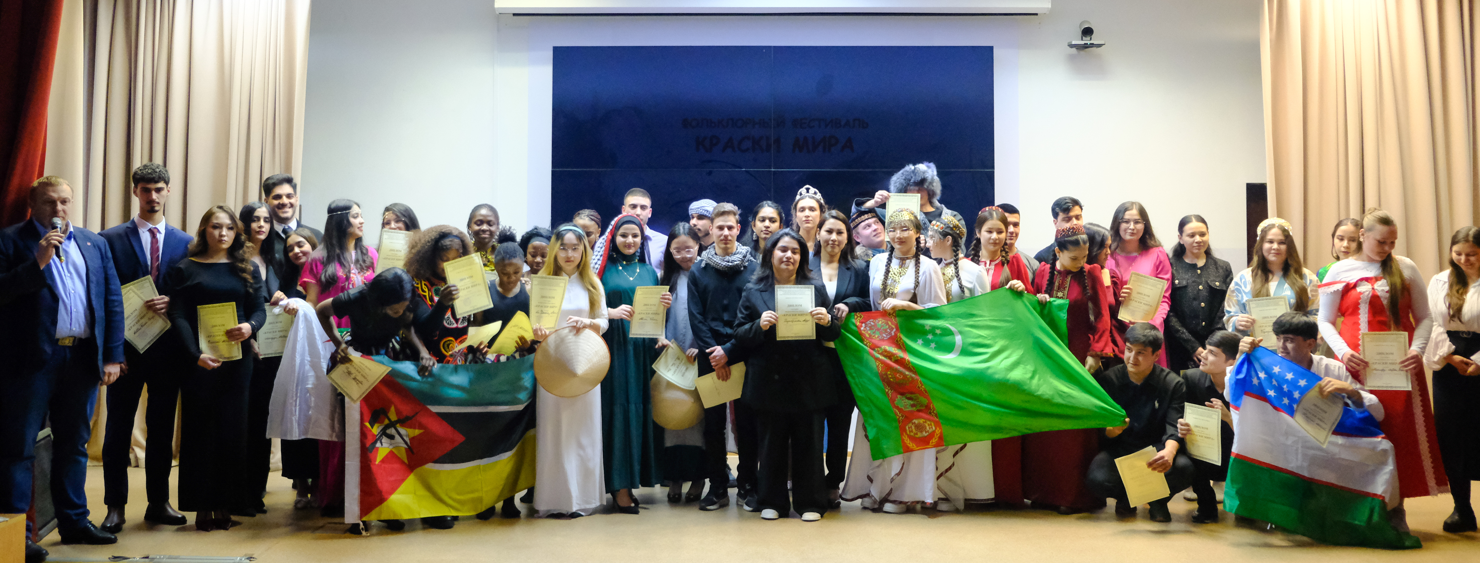 В среду 25 марта в Педиатрическом университете состоялся ежегодный фольклорный фестиваль “Краски мира”. Организаторами фестиваля выступили кафедра русского языка и деканат по работе с иностранными обучающимися. Большое содействие в организации вечера оказал студенческий клуб «Гиппократ».