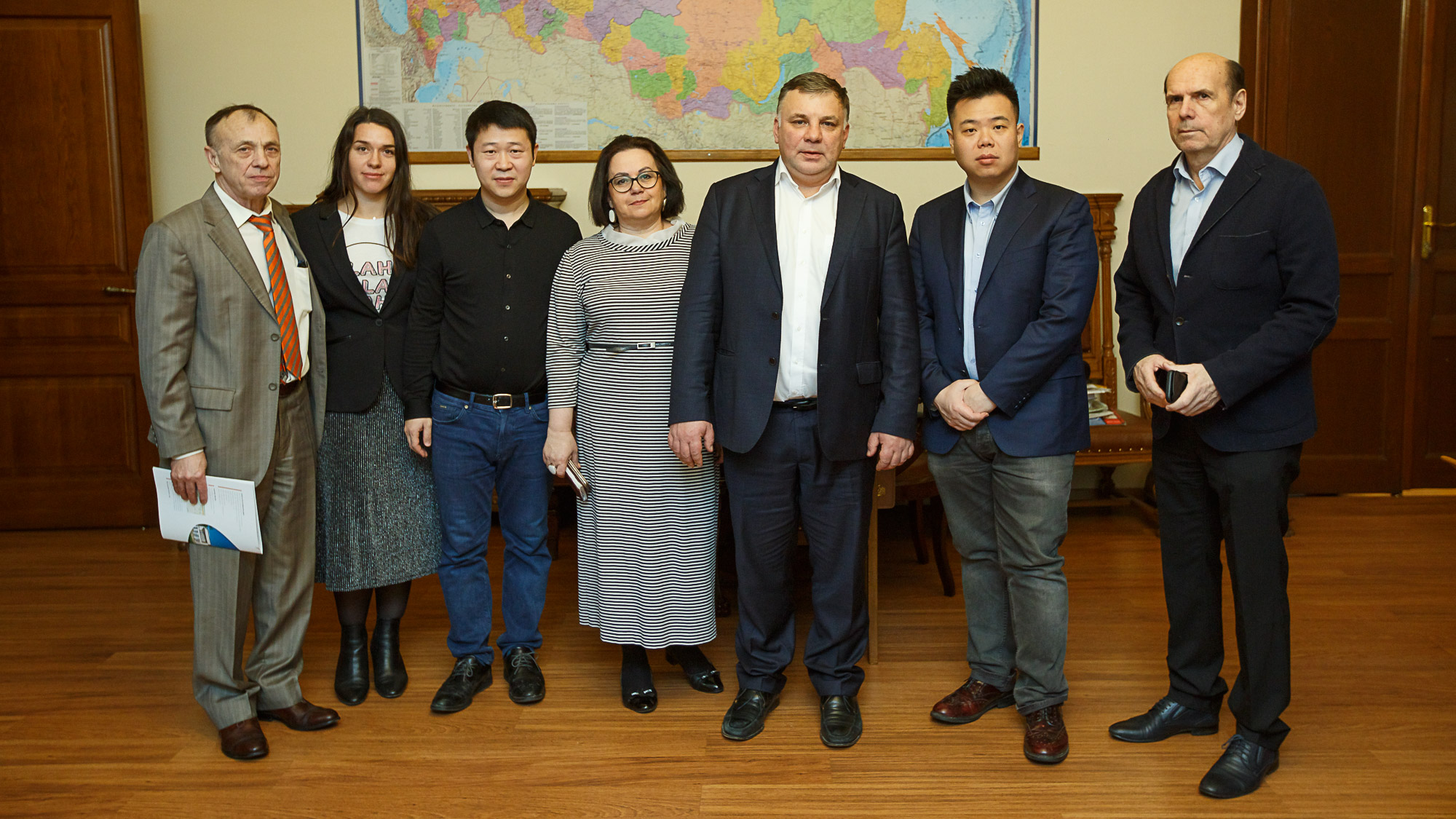 Зарубежных гостей принимало руководство вуза: и.о. ректора СПбГПМУ, главный неонатолог России — Дмитрий Олегович Иванов, проректор по административной работе и оперативному управлению Иван Дмитриевич Ляхов и заведующая кафедрой реабилитологии ФП и ДПО, д.м.н., профессор Галина Анатольевна Суслова. Во главе Китайской делегации присутствовал Первый заместитель ректора Университета господин Ден Бо. Он рассказал об истории своего вуза.