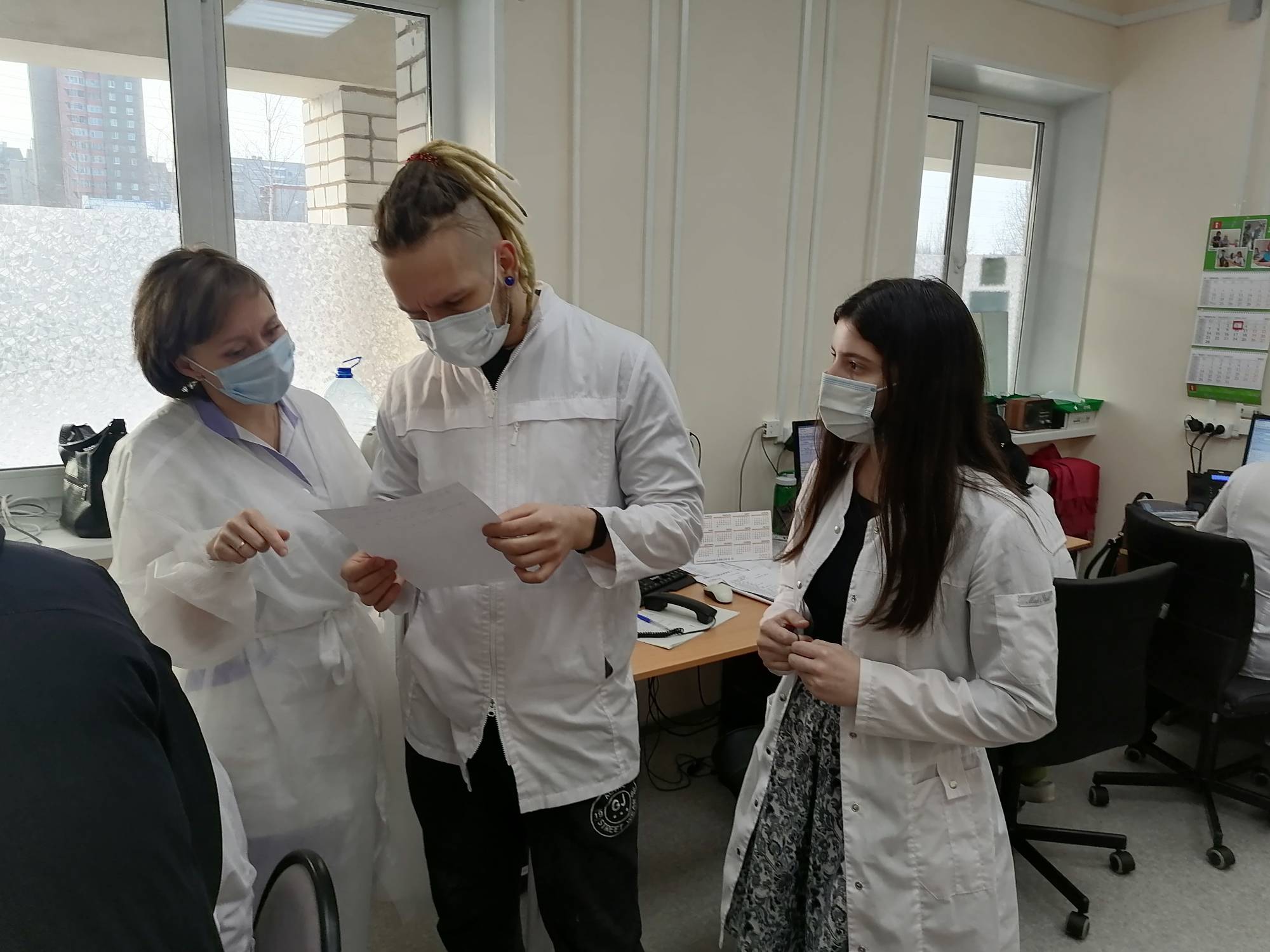 Всех разместили в общежитии Петрозаводского государственного университета. Оперативно организовано питание, еду привозят утром и вечером прямо в общежитие, горячую, вкусную, а днем на место работы. Решены и проблемы с транспортом до рабочего места. Например, в большой поликлинике N4 студенты работают с 8 до 20 часов, поликлиника обслуживает 54 тыс. взрослых и 10 тыс. детей, поэтому ребятам покрываются расходы на такси и маршрутки. Так что, когда все собираются на летучке в общежитии, ребята из четвёртой поликлиники приходят последними. Впрочем, всё равно все друг друга увидят, обменяются новостями.