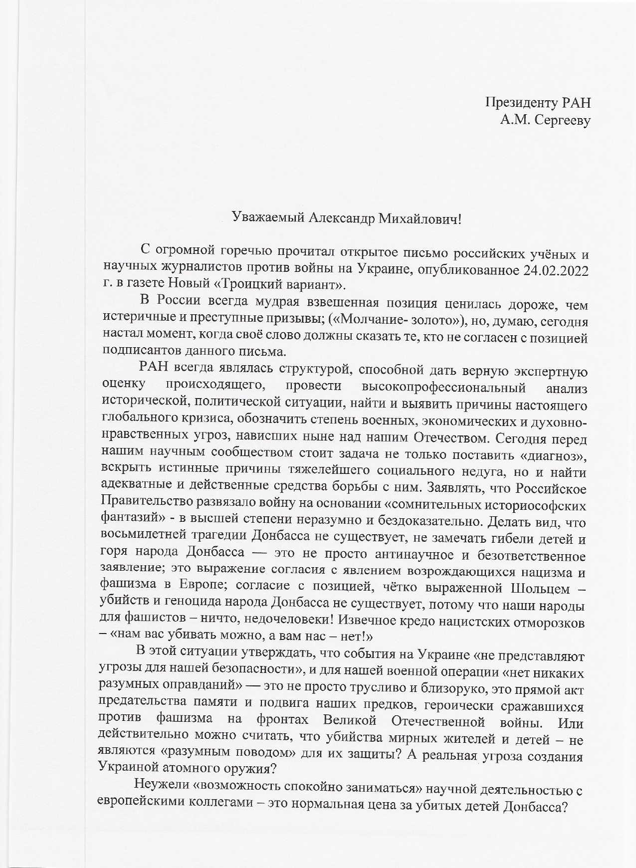 —Действительно, сегодня наступило время, когда научное сообщество обязано сплотиться, чтобы аргументировано выступить с анализом и оценкой действий, нацеленных на искоренение неофашизма и терроризма на украинской земле. На протяжении более, чем восьми лет Педиатрический университет был непосредственным участником спасения самых тяжелых, беззащитных детей с блокированной территории Донецка и Луганска. Их не принимали в украинских клиниках, отказывали в высокотехнологическом обследовании и лечении, и если бы не ученые, врачи России, детей ждала неминуемая смерть. Неужели одного этого мало для того, чтобы понять до какого накала дошла ситуация!, — заявил в письме коллеге Дмитрий Иванов. |