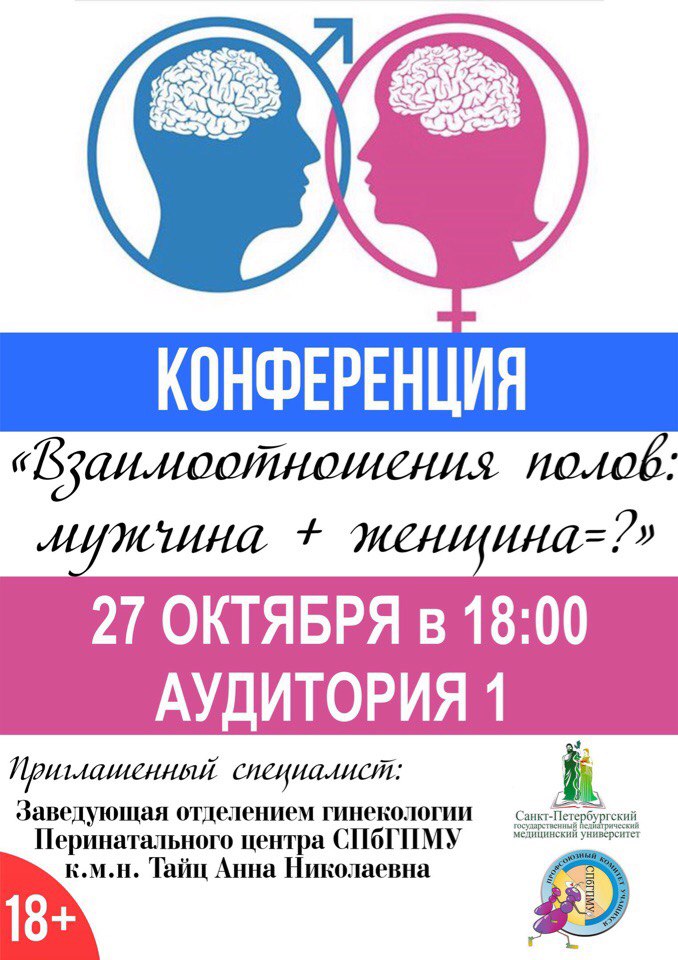 Внимание. Дорогие друзья, СНО кафедры акушерства и гинекологии совместно с Профсоюзом учащихся приглашает всех желающих посетить ежегодную конференцию "Взаимоотношение полов", на которой будут обсуждаться все самые волнующие и пикантные вопросы. Будем рады видеть вас 27.10.2017 в 18:00 в 1 аудитории.