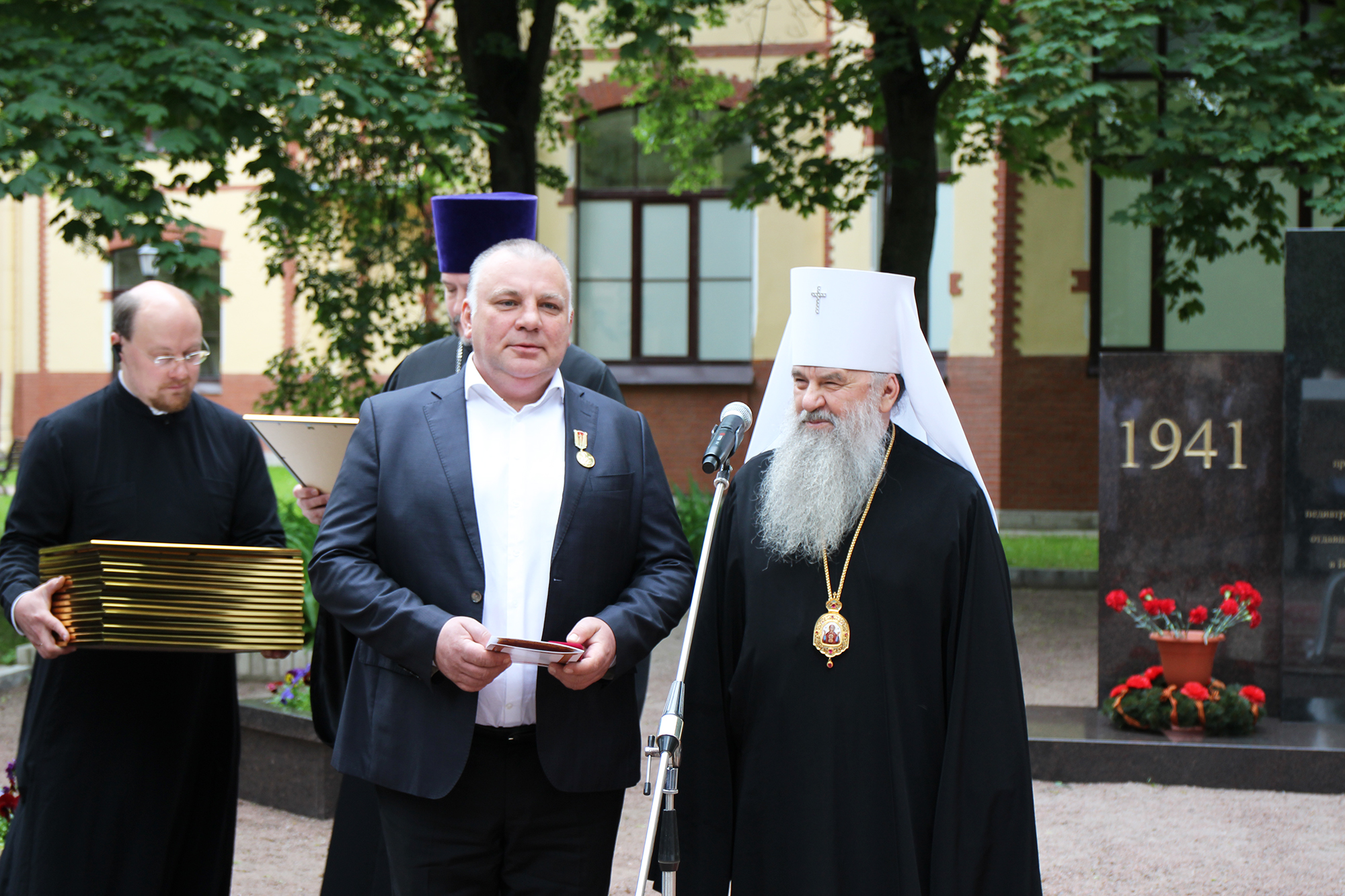 Врачи, преподаватели и студенты, а также почётные гости вуза отдали дань подвигу медицинских работников. В торжественно-траурной церемонии приняли участие председатель Законодательного Собрания Северной столицы Александр Бельский, ректор Санкт-Петербургского государственного педиатрического университета доктор медицинских наук, профессор Дмитрий Иванов, руководители вузов, больниц и госпиталей города, органов власти и местного самоуправления. Владыке Варсонофию сослужил настоятель храма во имя Святых Страстотерпцев Царя Николая и Царицы Александры при Педиатрическом университете протоиерей Пётр Мухин.