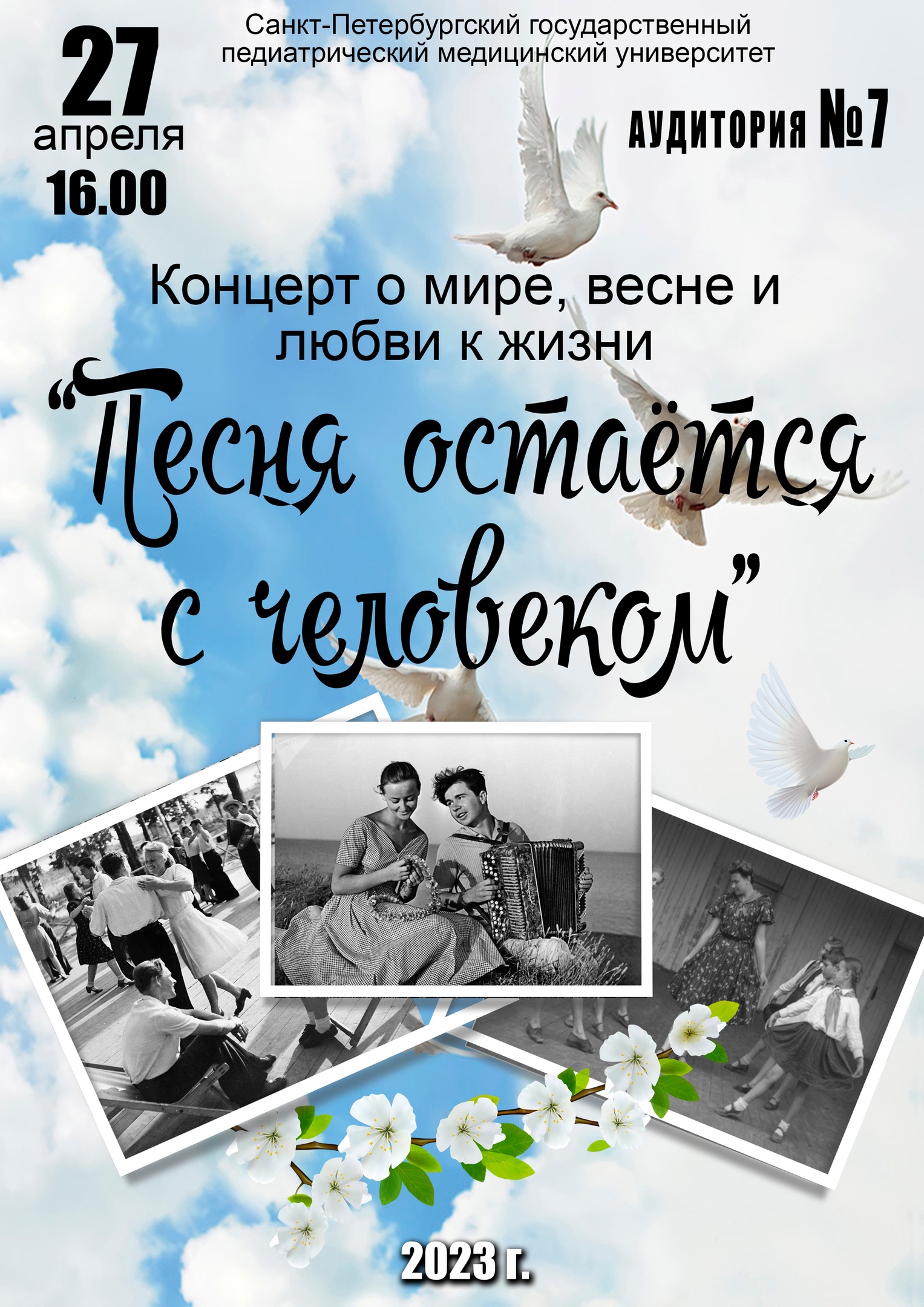 27 апреля в 16.00 в аудитории №7 пройдёт концерт о мире, весне и любви к жизни.