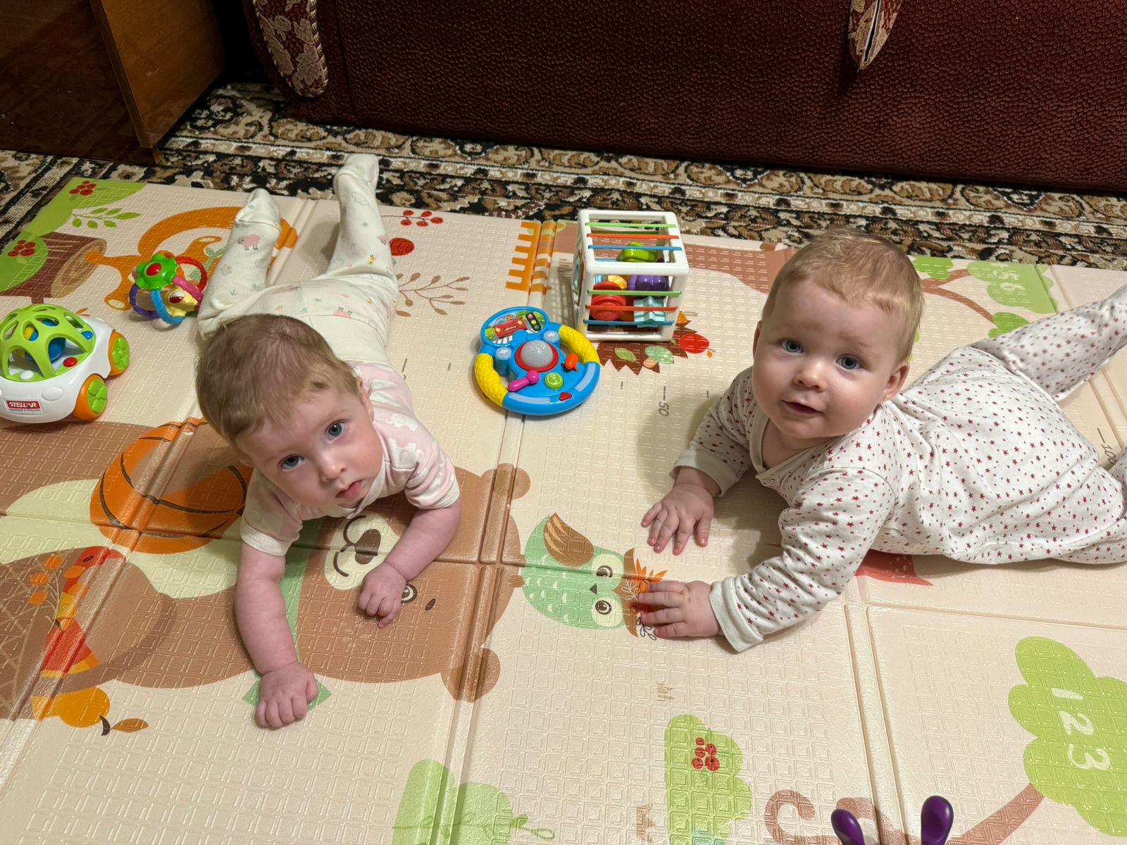 Двойняшки уже подросли и стали обращать внимание друг на друга.