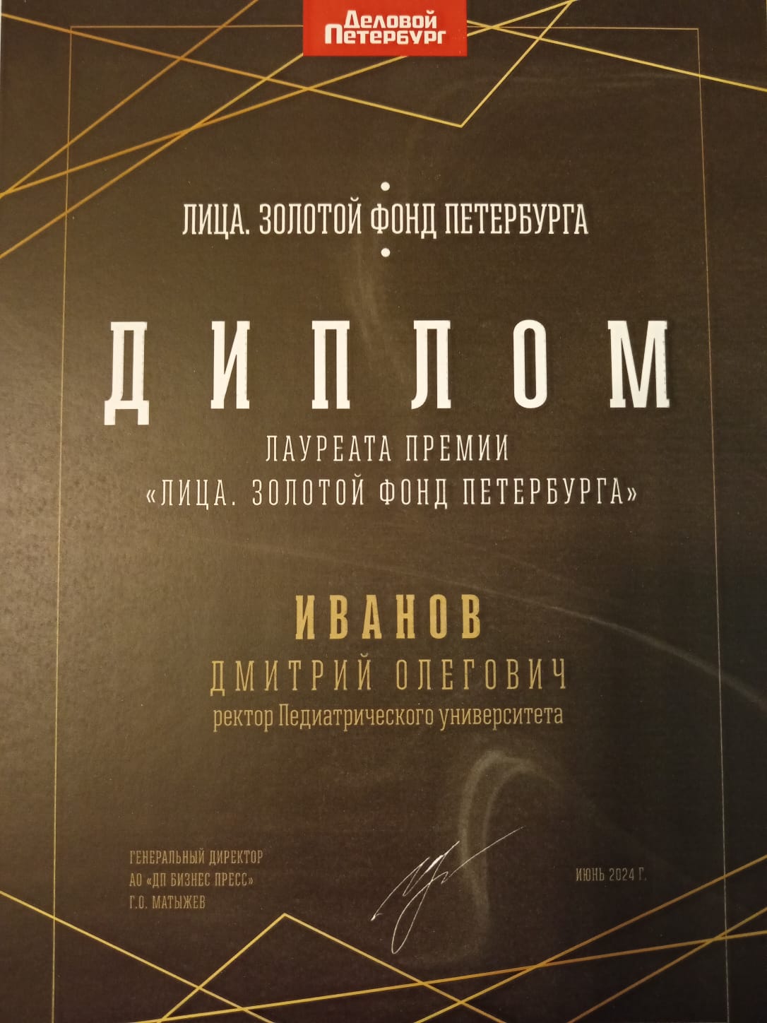На церемонии вручения награды Дмитрий Иванов не смог принять личное участие в связи с мероприятием в Москве под председательством министра здравоохранения страны, где рассматривались вопросы медицинского образования.