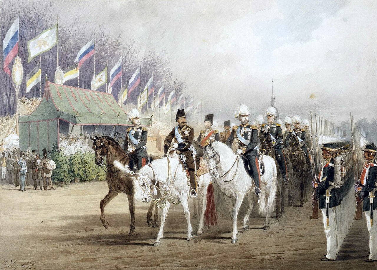 Михай Зичи. «Александр II и шах Наср-эд-Дин во время парада на Царицыном лугу» (1874 г.)
