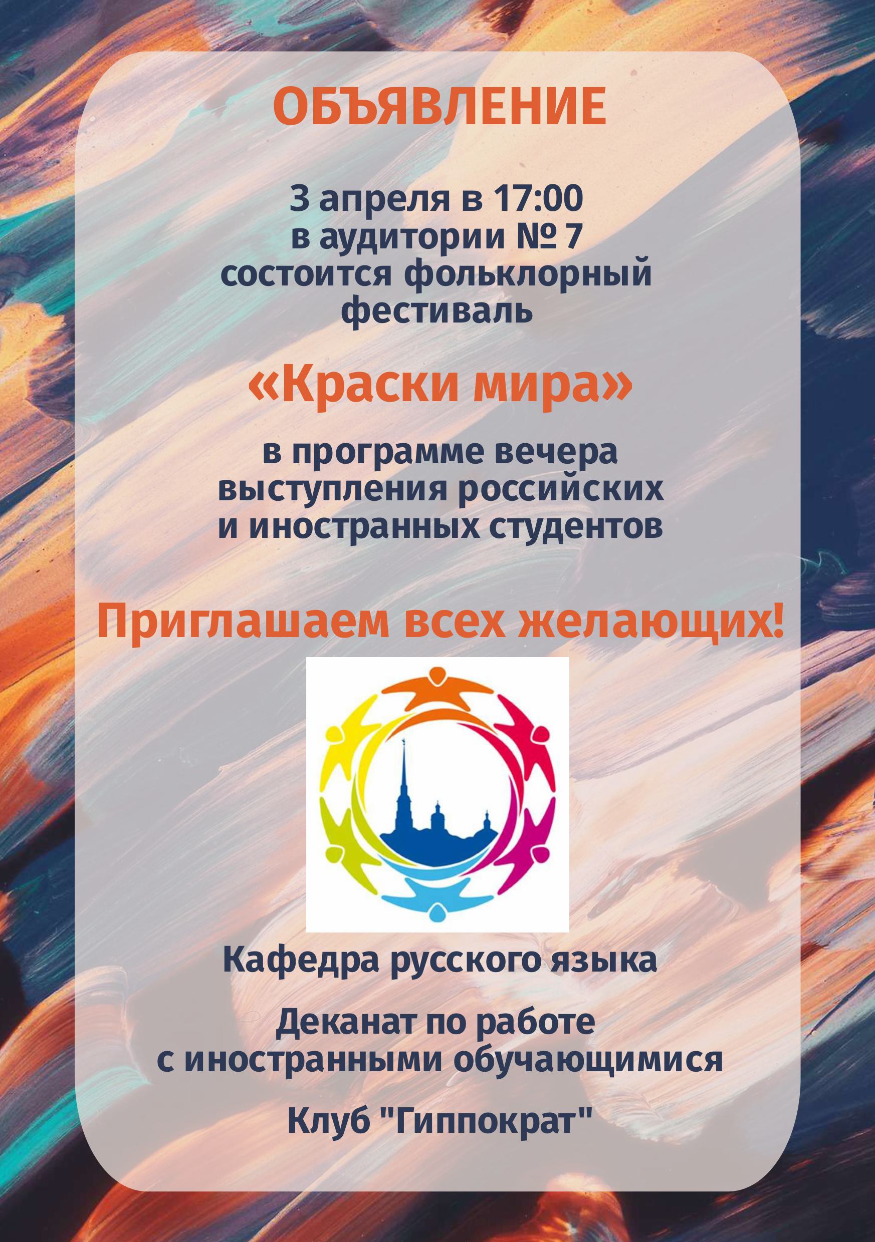 Приглашаем на фольклорный фестиваль «Краски мира»