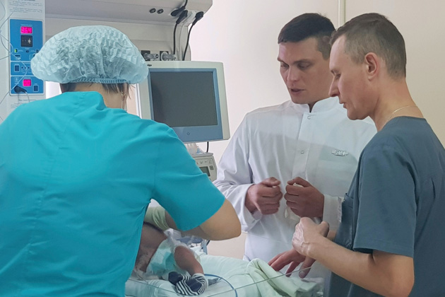 Почти целую неделю он совместно с анестезиологами-реаниматологами Областного клинического перинатального центра имени Решетовой работал с тяжелейшими маленькими пациентами. Врачи проводили работу в режиме реального времени в отделении реанимации для новорожденных. Кемеровские реаниматологи и столичный специалист спасали малышей, опробовали современные технологии, а также выхаживали глубоко недоношенных детей.
