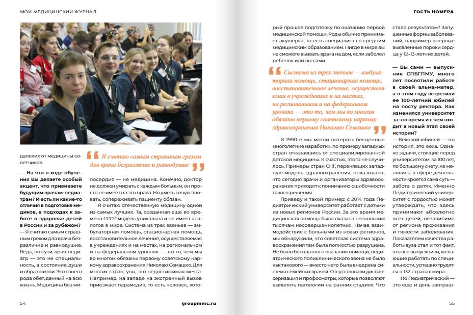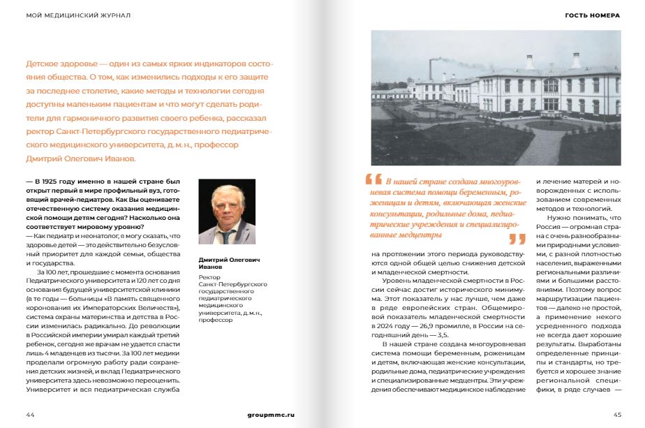 В свет вышел новый номер издания «Мой медицинский журнал». Гостем номера стал ректор Педиатрического медицинского университета, главный неонатолог Министерства здравоохранения Российской Федерации Дмитрий Иванов.