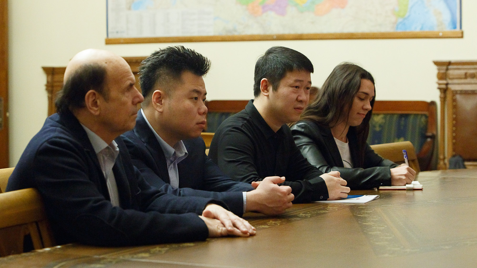 Зарубежных гостей принимало руководство вуза: и.о. ректора СПбГПМУ, главный неонатолог России — Дмитрий Олегович Иванов, проректор по административной работе и оперативному управлению Иван Дмитриевич Ляхов и заведующая кафедрой реабилитологии ФП и ДПО, д.м.н., профессор Галина Анатольевна Суслова. Во главе Китайской делегации присутствовал Первый заместитель ректора Университета господин Ден Бо. Он рассказал об истории своего вуза.