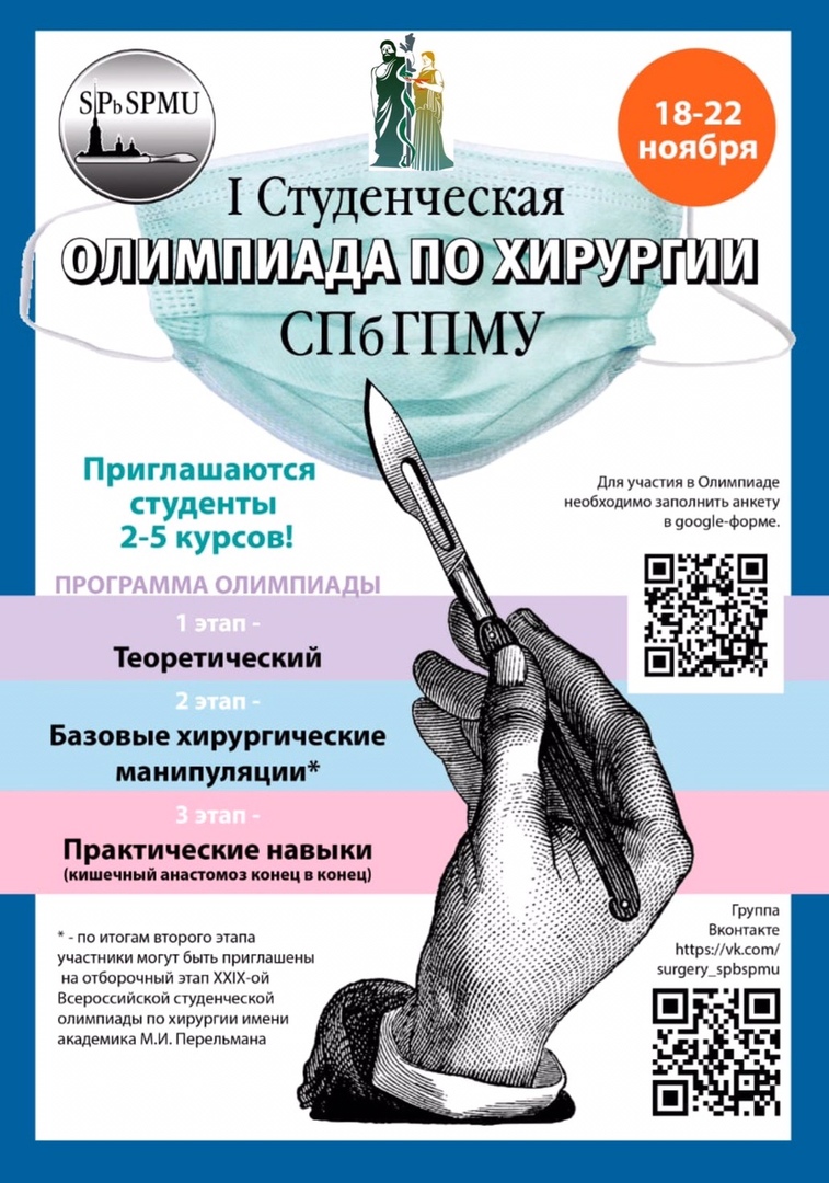 18-22 ноября в Педиатрическом университете пройдет I Студенческая Олимпиада по хирургии.
