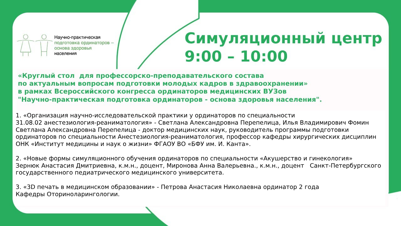 25-26 Мая 2026 года в рамках ежегодного Национального конгресса с международным участием «Здоровые дети – будущее страны» пройдёт Всероссийский конгресс ординаторов медицинских ВУЗов «Научно-практическая подготовка ординаторов — основа здоровья населения».