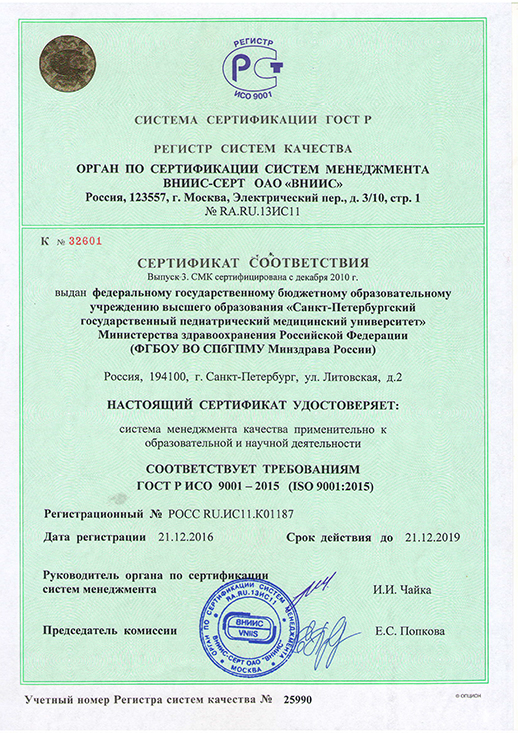 ФГБОУ ВО СПбГПМУ Минздрава России осуществляет образовательную деятельность на основании документов: